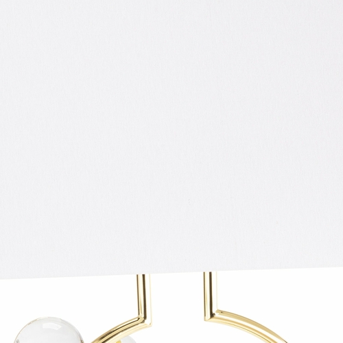 The polished brass structure provides warmth and clarity, while the crystal accents capture and reflect ambient light, adding subtle sparkle to the surrounding space. Topped with a crisp rectangular linen shade, the design balances decorative detail with a calm, structured silhouette.
