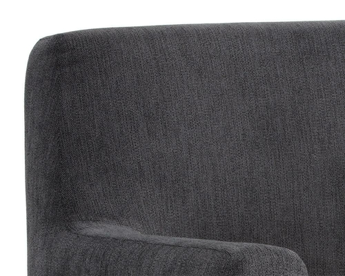 Deep cushioning and supportive armrests provide excellent comfort for lounging, reading, or entertaining guests. The subtle angles of the arms and backrest create a welcoming seat while maintaining a sleek contemporary aesthetic.
