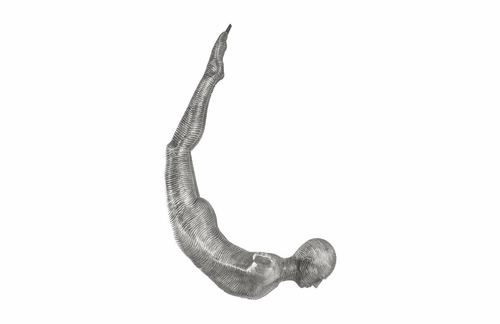 This piece depicts a diver suspended in the moment before entering the water, the body extended in a graceful arc that expresses balance, discipline, and fluid movement. The elongated form and controlled posture convey a powerful sense of motion, transforming the sculpture into a dramatic visual statement.