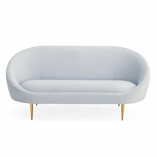 Slender brass stiletto legs elevate the piece both visually and physically, providing contrast to the plush upholstery and adding a touch of polished glamour. Ideal for apartments, sitting rooms, or elegant lounge settings, the sofa offers a balance of softness, structure, and contemporary character.