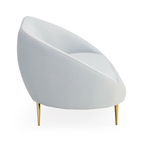 Upholstered in Bergamo Ice velvet, the fabric reveals subtle striations that catch the light with delicate hints of silver and blue. This luminous texture adds depth and dimension, giving the sofa an ethereal quality while remaining understated and refined.