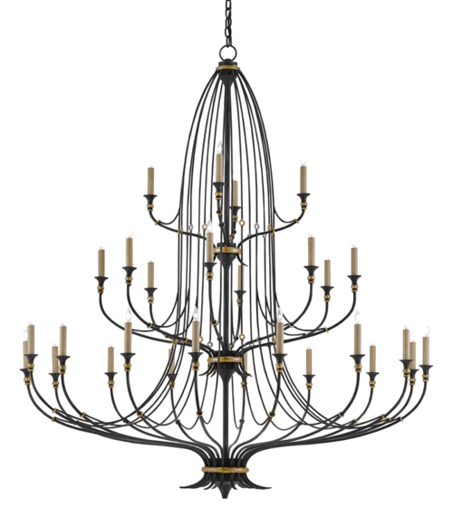 The Folgate Grande Chandelier commands attention through its sweeping open structure and impressive scale. Crafted from wrought iron, the chandelier features an airy architectural form that rises upward into a tall sculptural silhouette, allowing the piece to feel light and elegant despite its dramatic size.