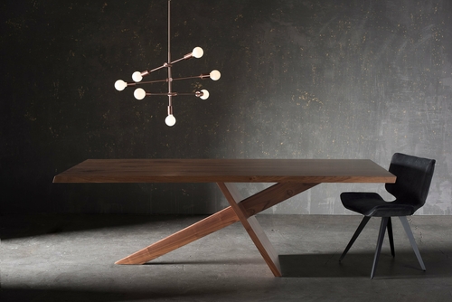 Its defining feature is the dynamic cross-leg base, inspired by the precision and balance suggested by its name. The intersecting wooden supports create a bold geometric silhouette while providing exceptional structural stability. This sculptural base introduces movement and visual interest, transforming the table into a true centerpiece of the room.