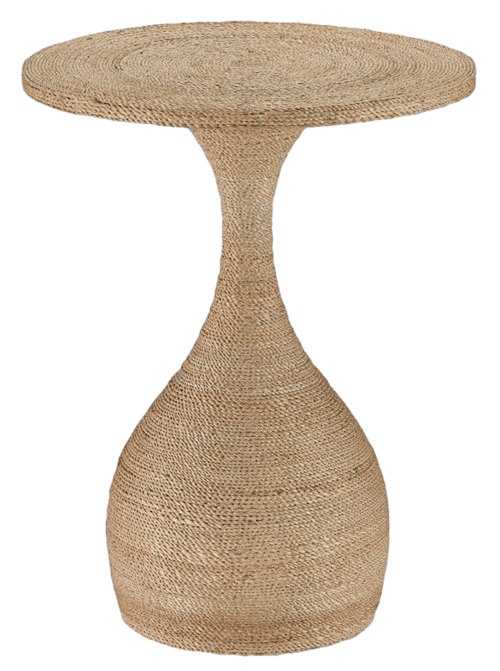 Supported by an engineered hardwood core, the table offers both durability and stability beneath its woven exterior. Whether placed beside a sofa, lounge chair, or in a relaxed living space, the piece introduces natural materials and sculptural softness into the interior.