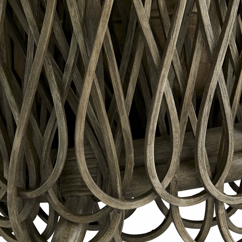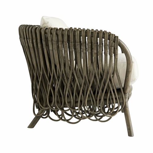 Distinctive overlapping loops of square-cut rattan wrap around the frame, forming an intricate woven pattern that adds depth and texture to the design. Finished in a subtle gray wash, the natural material is given a contemporary tone that complements modern interiors while retaining its organic warmth.