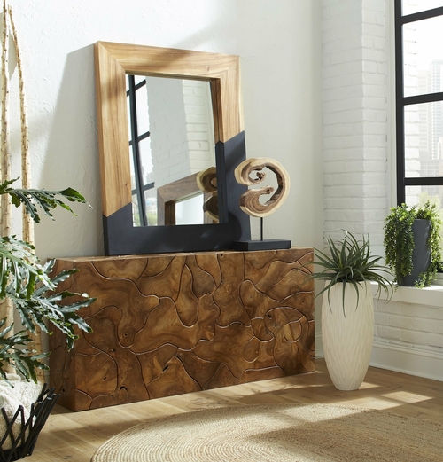 A celebration of craftsmanship and natural materials, the Teak Slice Console Table transforms reclaimed wood fragments into a striking architectural statement.